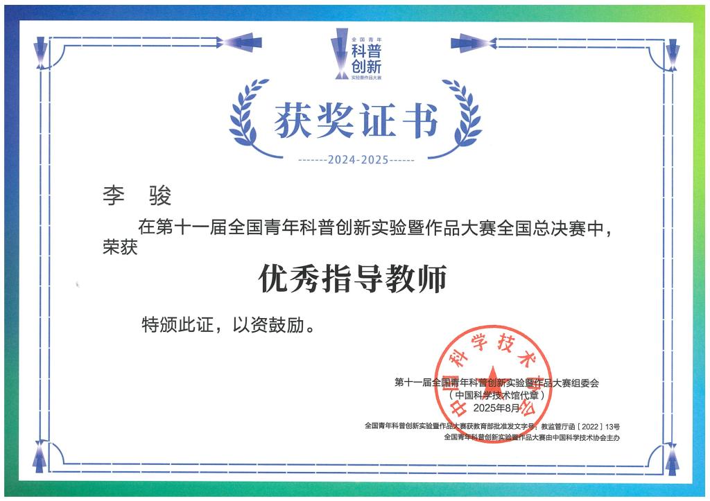 上海南湖职业技术学院科创团队获得第十一届全国青年科普创新实验暨作品大赛全国总决赛三等奖